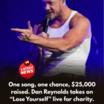 You feel the tension the moment the beat drops—one song, one chance, and everything on the line. Dan Reynolds steps up and delivers “Lose Yourself” with raw intensity, knowing it’s all for a cause bigger than the stage. Every lyric hits harder when you realize $25,000 is being raised in real time. You’re not just